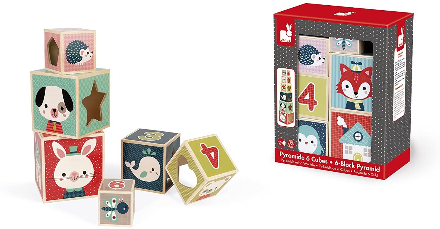 Este juego de construcción, compuesto por 6 cubos encastrables de madera, animará a su hijo a desarrollar su coordinación y su sentido de la observación.