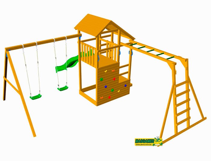 NOVEDAD en columpios de madera para exterior es el Parque infantil MASGAMES TEIDE con Columpio y Escalera de Mono
