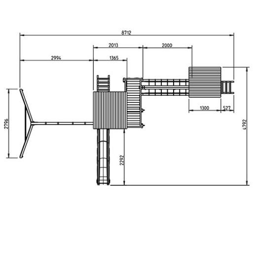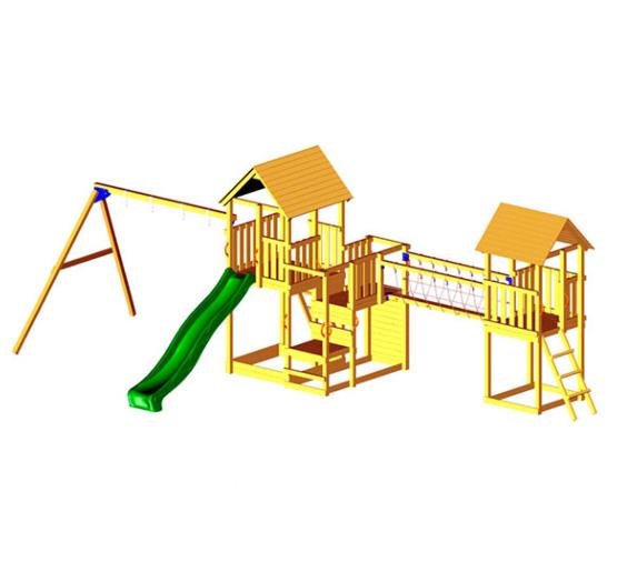 En este conjunto participa la Torre Penthouse, la Torre Kiosk y el puente @Bridge. Este puente une las dos torres. Es decir, el parque infantil Andes se compone de dos torres infantiles y un puente de madera cuadrada, muy fuerte y resistente, ideal para su jardín.