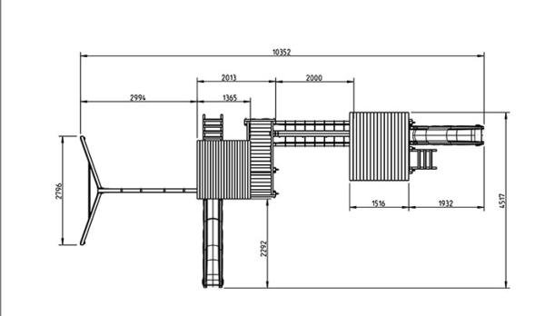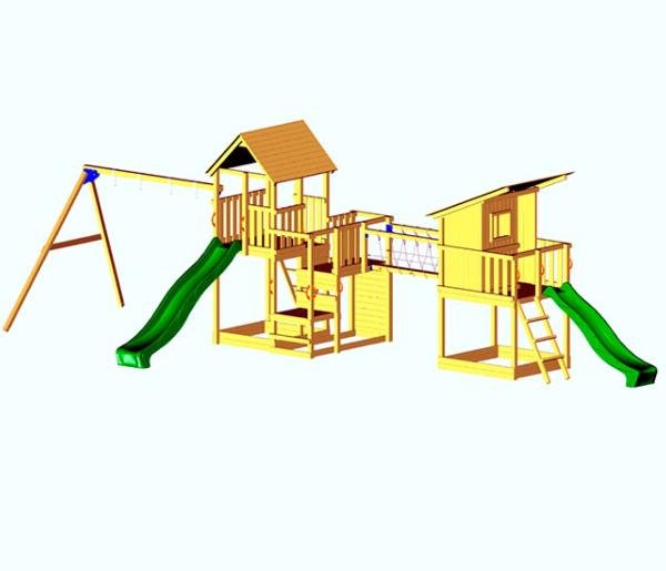 En este conjunto participa la Torre Penthouse, la Torre Beach Hut y el puente @Bridge. Este puente une las dos torres. Es decir, el parque infantil Atlas se compone de dos torres infantiles y un puente de madera cuadrada, muy fuerte y resistente, ideal para su jardín. En una de las torres se añade la estructura de un columpio doble.