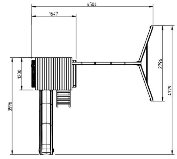 La torre de madera Belvedere con columpio tiene las siguientes medidas: