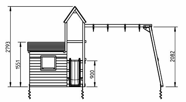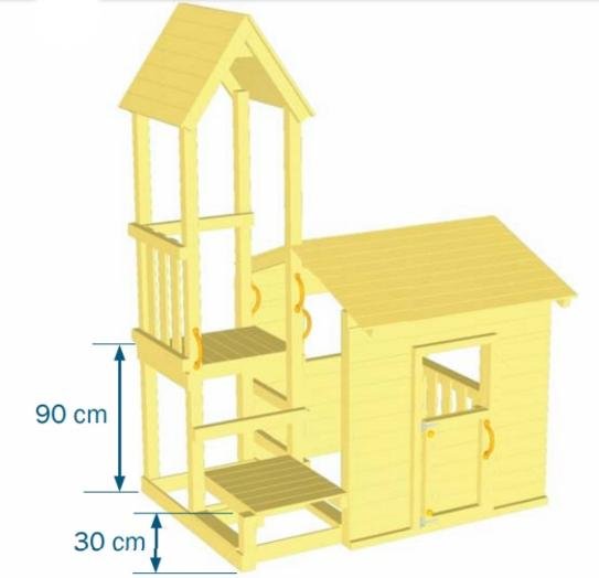 – El parque infantil Lookout M tiene la plataforma con tobogán a 90 cm de altura.La torre tiene una altura de 2,79 m (esta versión más bajita no se le puede añadir columpio)
