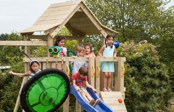 Puede comprar aparte complementos como un columpio, la campana, un telescopio y más que no se incluyen.