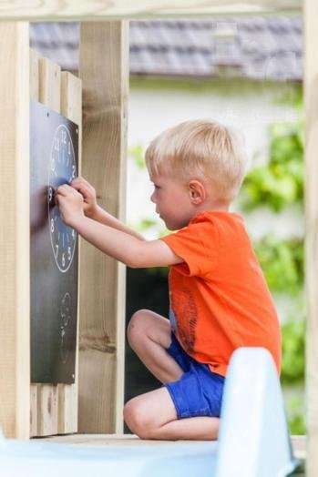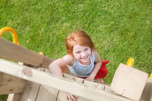 Este parque infantil Pagoda consiste en una casita de madera elevada, la torre infantil dispone de dos tipos de escaleras que ayudarán a los niños a subir a la caseta infantil elevada. Una de las escaleras es en vertical (parte delantera) y la otra está inclinada, situada en la parte trasera de la torre infantil. Una vez arriba pueden jugar, vigilar, mirar, descansar, entre otras muchas cosas. Para bajar de la torre infantil Pagoda se utiliza un super tobogán, que rápidamente les conducirá a tierra.