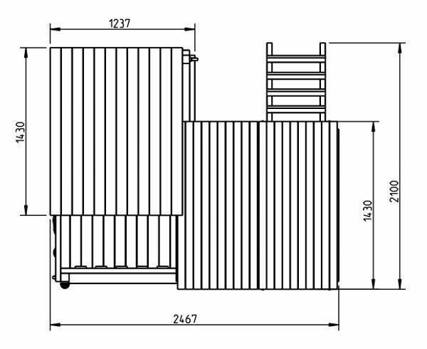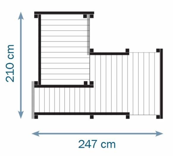 Las medidas de la cabaña son: 143 cm (largo) x 124 cm (ancho) x 100 cm (altura más baja)