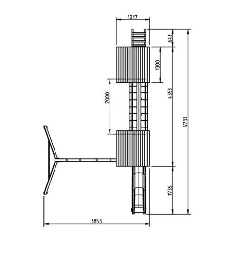 En este conjunto participa la Torre Kiosk, la Torre Beach Hut y el puente @Bridge. Este puente une una torre con la otra. Es decir, el parque infantil Pirineos consiste en dos torres y un puente de madera cuadrada, muy fuerte y resistente, ideal para su jardín.