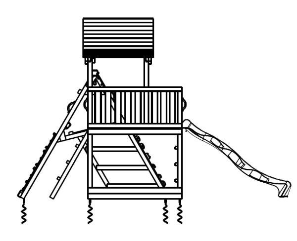 Este parque infantil Pagoda consiste en una casita de madera elevada, la torre infantil dispone de dos tipos de escaleras que ayudarán a los niños a subir a la caseta infantil elevada. Una de las escaleras es en vertical (parte delantera) y la otra está inclinada, situada en la parte trasera de la torre infantil. Una vez arriba pueden jugar, vigilar, mirar, descansar, entre otras muchas cosas. Para bajar de la torre infantil Pagoda se utiliza un super tobogán, que rápidamente les conducirá a tierra. Y para disfrutar aún más del parque infantil ya que se amplia con el columpio doble y con las rampas de escalada que se acoplan al parque.
