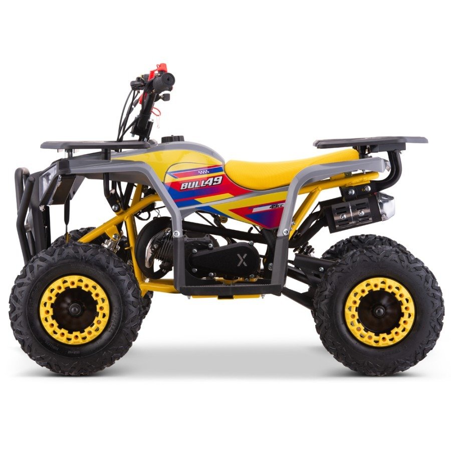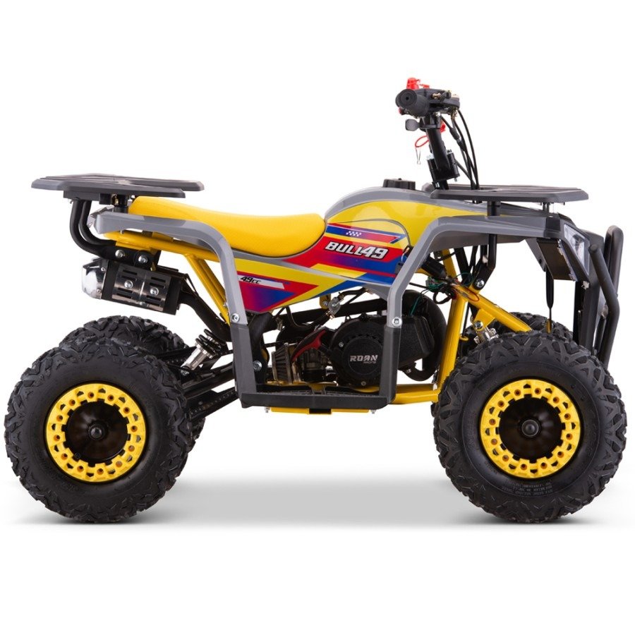El corazón del mini quad Roan Bull 49cc es su motor monocilíndrico de 2 tiempos, que entrega una potencia máxima de 4.5 CV. Esta potencia es más que suficiente para ofrecer a los pequeños una experiencia emocionante y dinámica. El motor de 49cc es fácil de manejar y no requiere grandes conocimientos técnicos, lo que lo hace ideal.