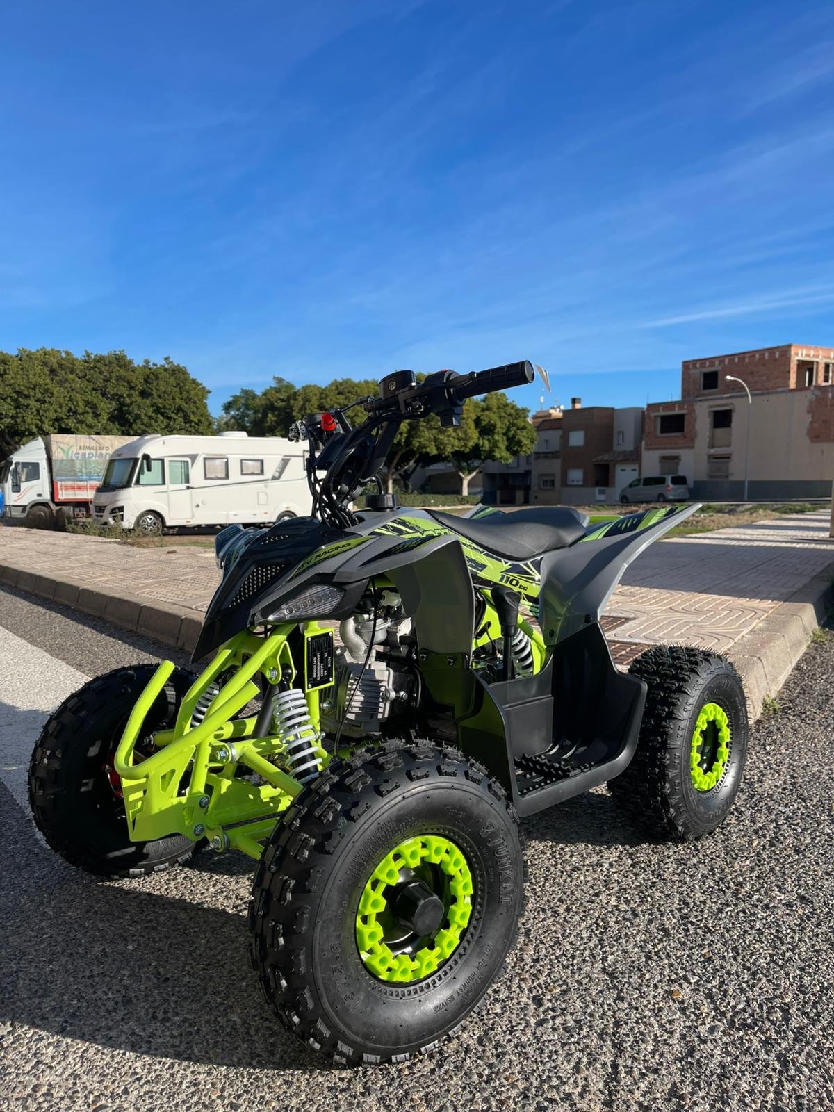 Descubre el Mini Quad 110cc, el compañero perfecto para los más aventureros. Diseñado con un potente motor monocilíndrico de 4 tiempos y arranque eléctrico, este quad combina rendimiento, seguridad y confort para disfrutar al máximo en circuitos cerrados o caminos privados.