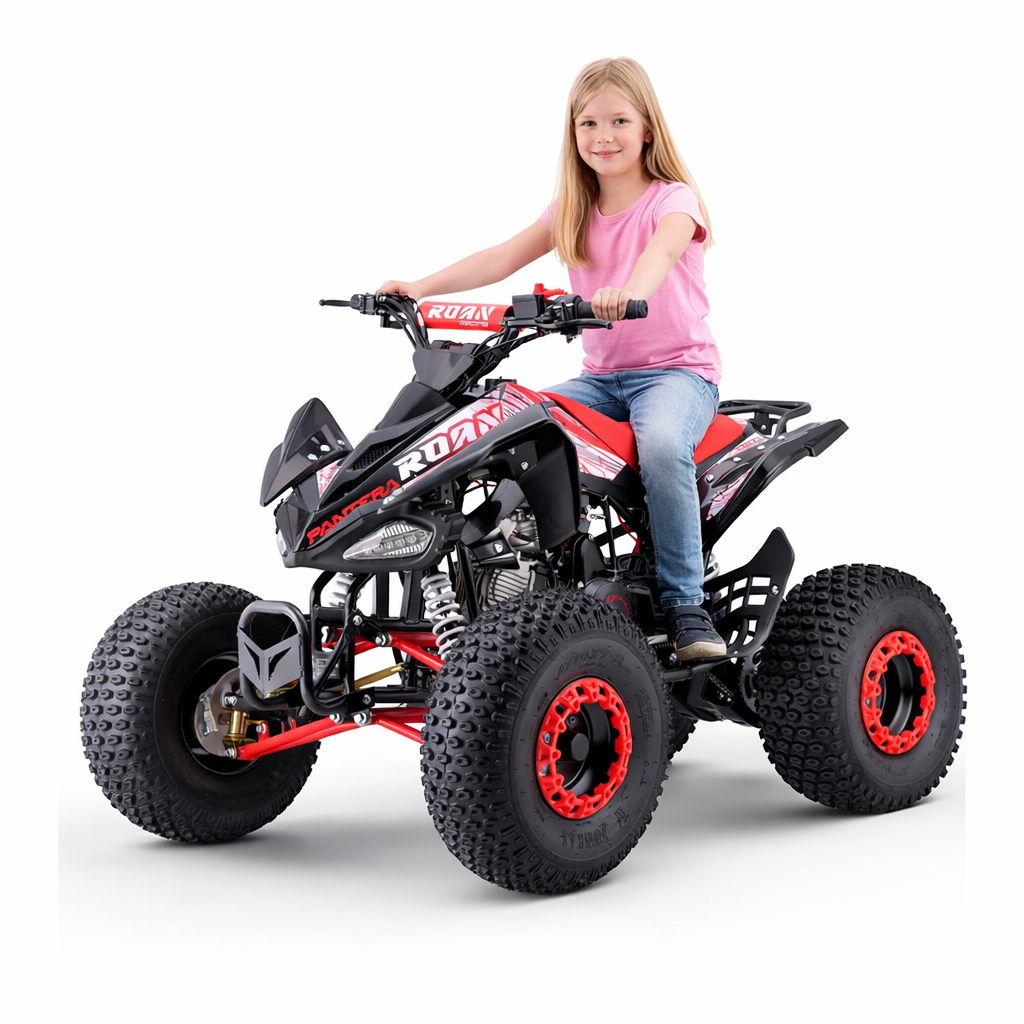 El Quad 110cc Pantera es un vehículo robusto y fiable, ideal para niños y jóvenes que quieren iniciarse en el mundo del motor de forma segura y divertida. Diseñado para uso recreativo en terrenos privados, combina facilidad de manejo, buen rendimiento y una estructura resistente.