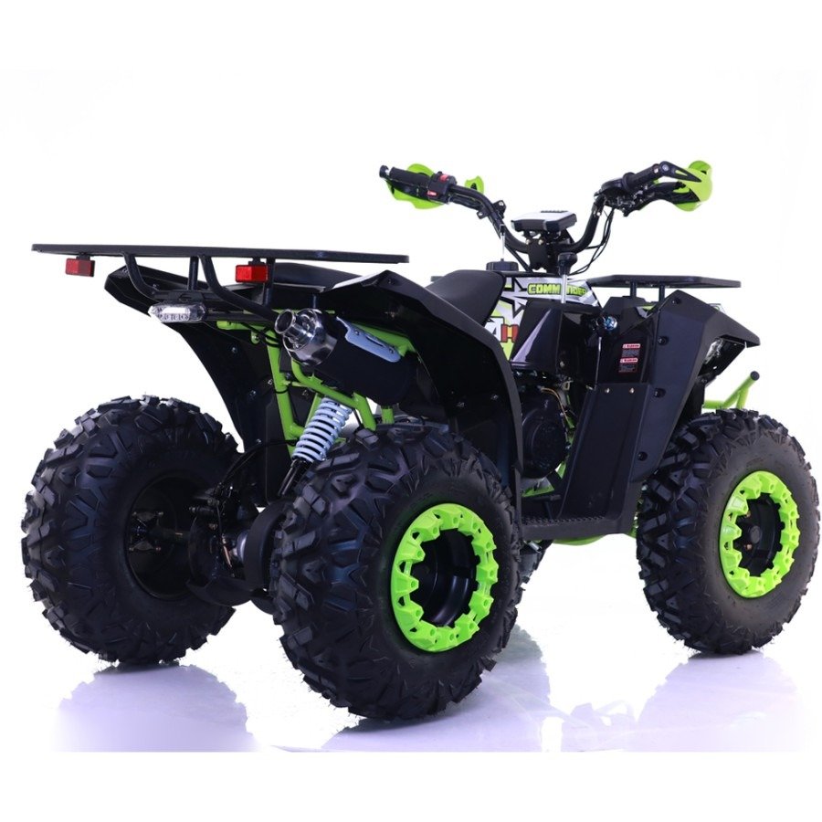 Además, el quad comnader viene equipado con iluminación de alta calidad, incluyendo una luz delantera de LED y un display que muestra información importante como la velocidad, las luces y el nivel de gasolina. Esto te permite mantener un control total incluso en condiciones de poca visibilidad.