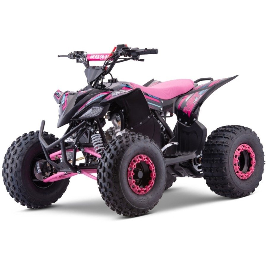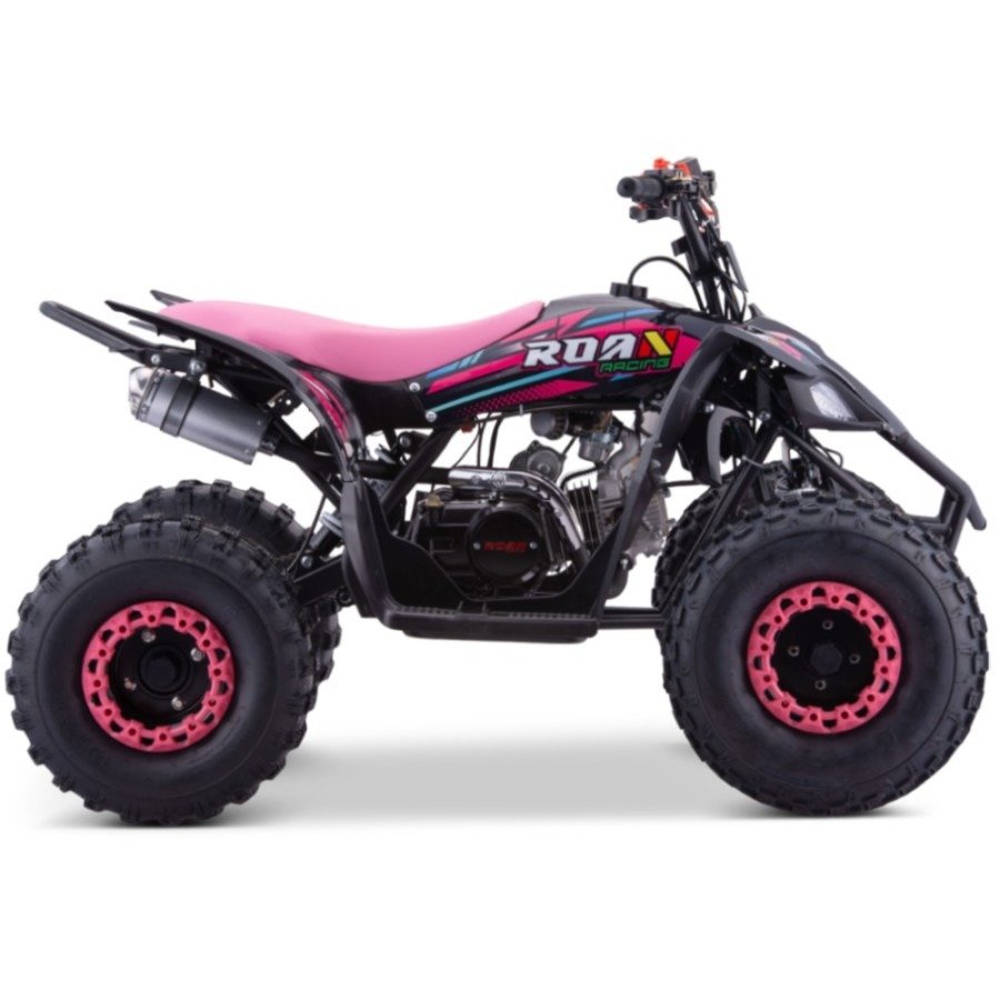 Quad de gasolina para niños  con cambio automático  con un motor monocilíndrico de 4 tiempos de 125cc, este quad es capaz de proporcionarte una experiencia emocionante en cualquier terreno. La seguridad es una prioridad en este modelo infantil, por eso cuenta con un pare de seguridad en caso de caída que te brinda tranquilidad y confianza en cualquier momento.