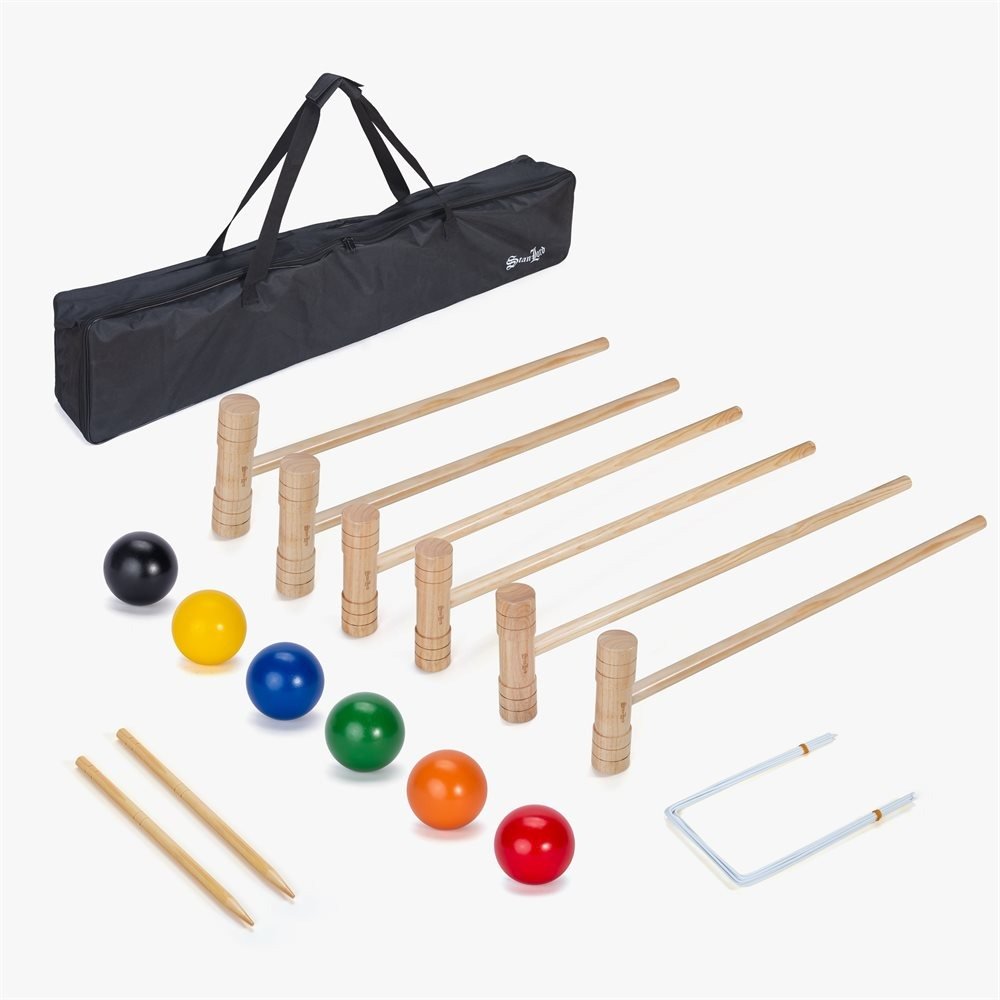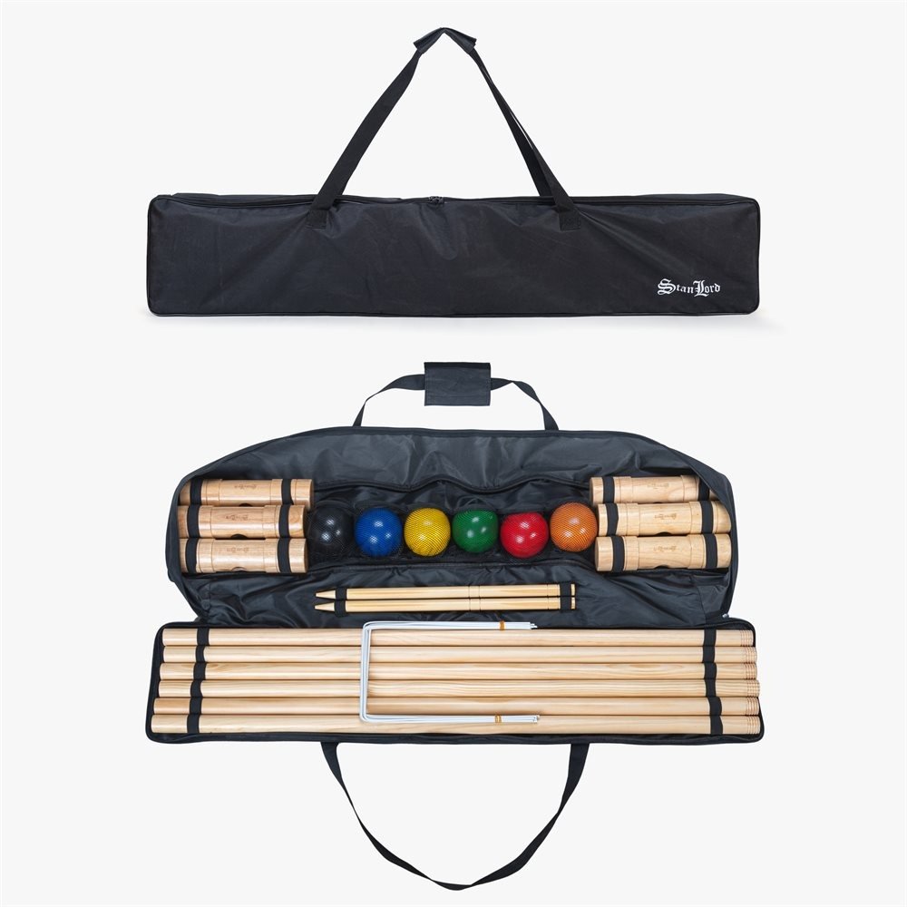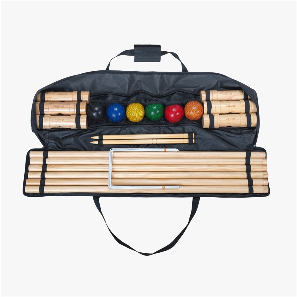 Croquet Pro en una edición de lujo, que incluye una resistente bolsa Oxford para guardar tu juego de croquet.