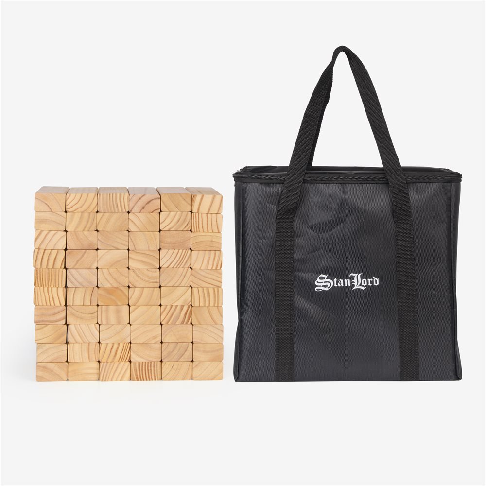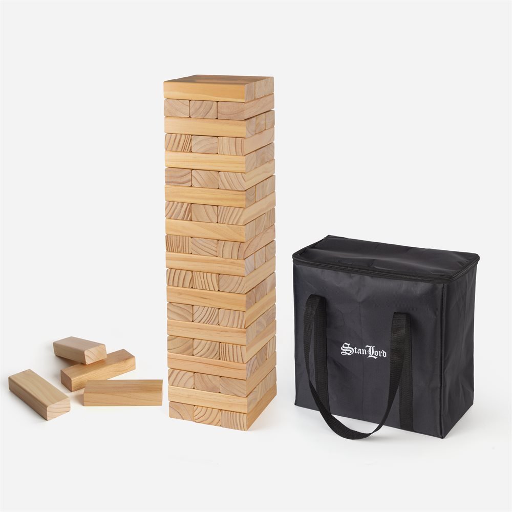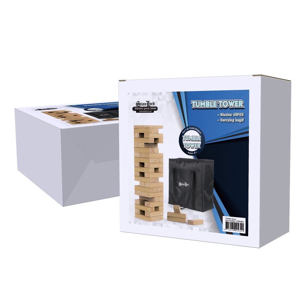 La Stanlord Tumble Tower está hecha de madera de pino, conocida por su capacidad para soportar el viento y el clima, y tiene una alta resistencia al impacto.