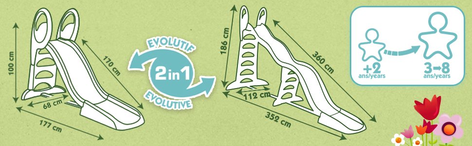 Nombre del modelo ‎Smoby – Tobogán Super Megagliss 2 en 1 – Deslizamiento de 1,70 m y 3,60 m –