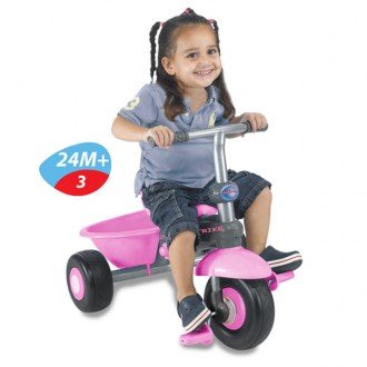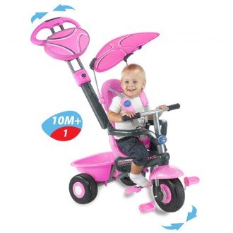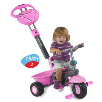 Así, en una primera etapa, son los padres quienes impulsan y dirigen el triciclo mediante el asa.