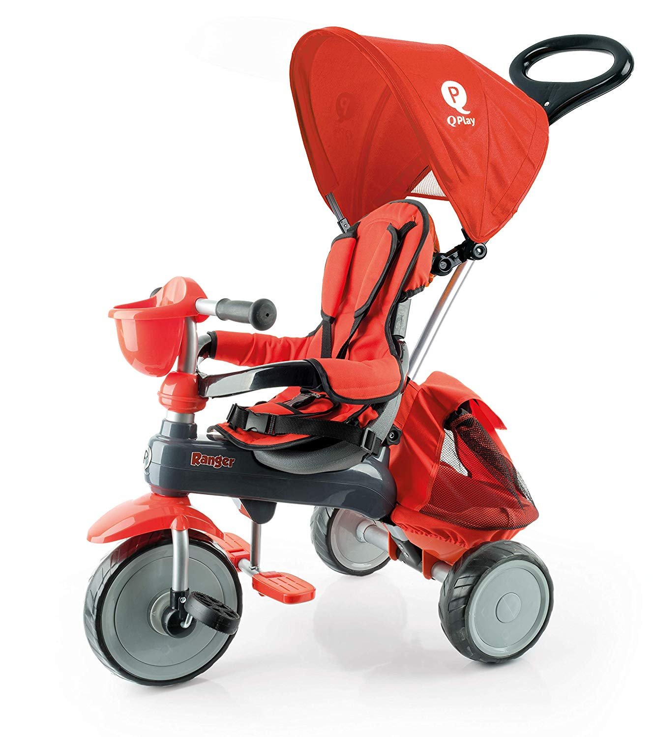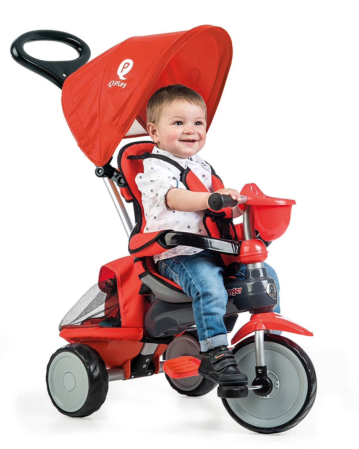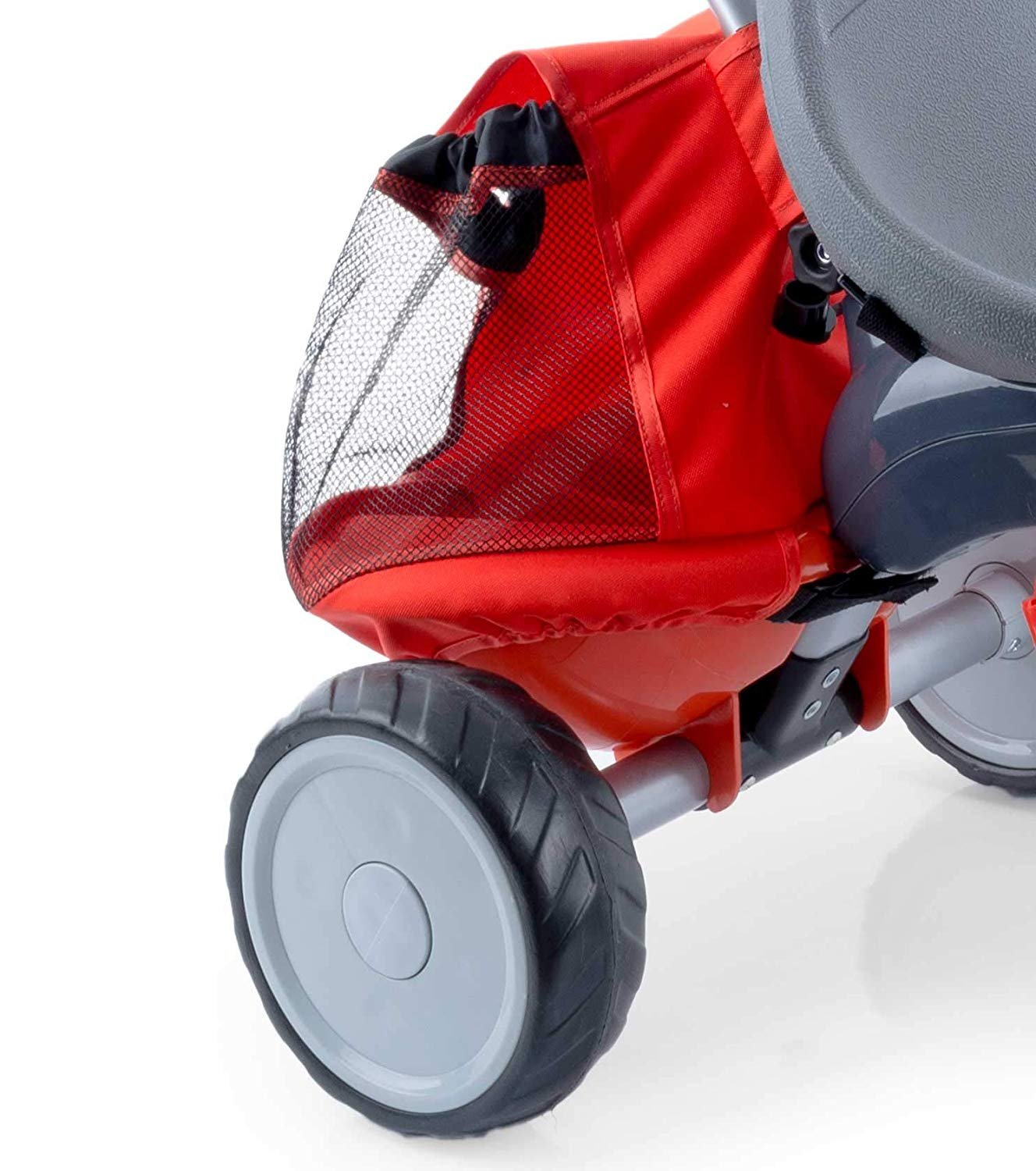 Chásis y estructura metálica. Incluye capota, reposapiés, portabebidas en el manillar y volquete con bolsa ajustable
